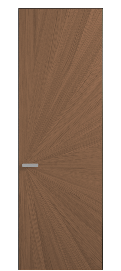 Полотно Рифт в скрытом алюминиевом коробе становится полноценным элементом декора. В коллекции представлено 9 моделей дверей в высоте до 3 метров. Рисунок раскладки шпона варьируется от простого до сложного. «Рубашка» для каждого полотна подбирается вручную по цвету, текстуре и фактуре.