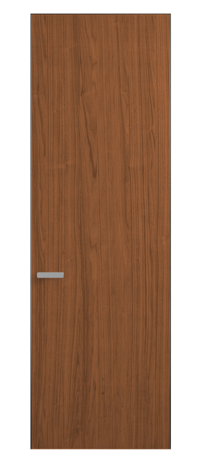 Полотно Рифт в скрытом алюминиевом коробе становится полноценным элементом декора. В коллекции представлено 9 моделей дверей в высоте до 3 метров. Рисунок раскладки шпона варьируется от простого до сложного. «Рубашка» для каждого полотна подбирается вручную по цвету, текстуре и фактуре.